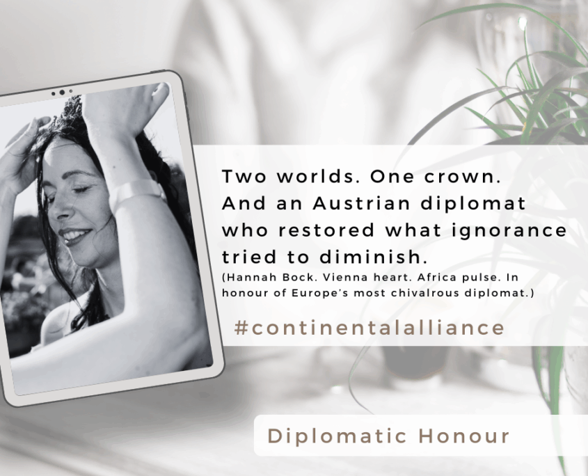 She has roots in European nobility and roots within the old Kingdom of Ségou. She was trained in court traditions across major regions, including French diplomacy and the historic Schönbrunn German court tradition as well as cultures across the globe.